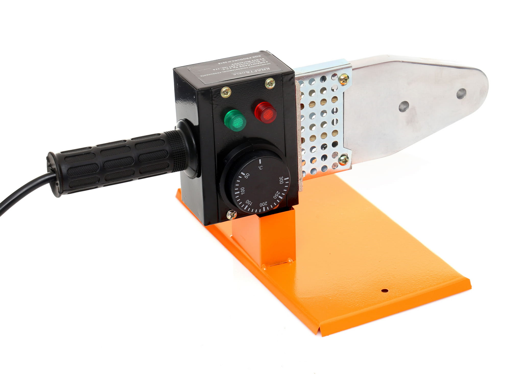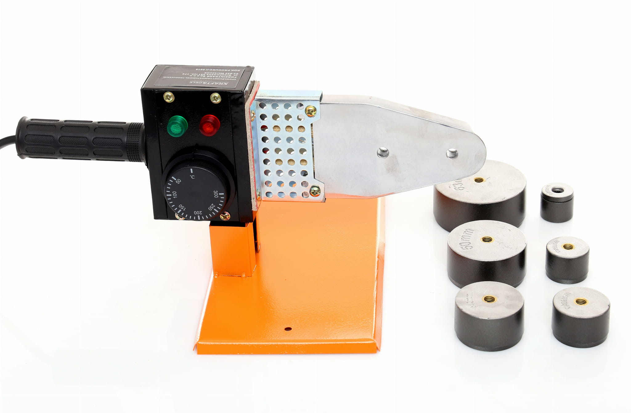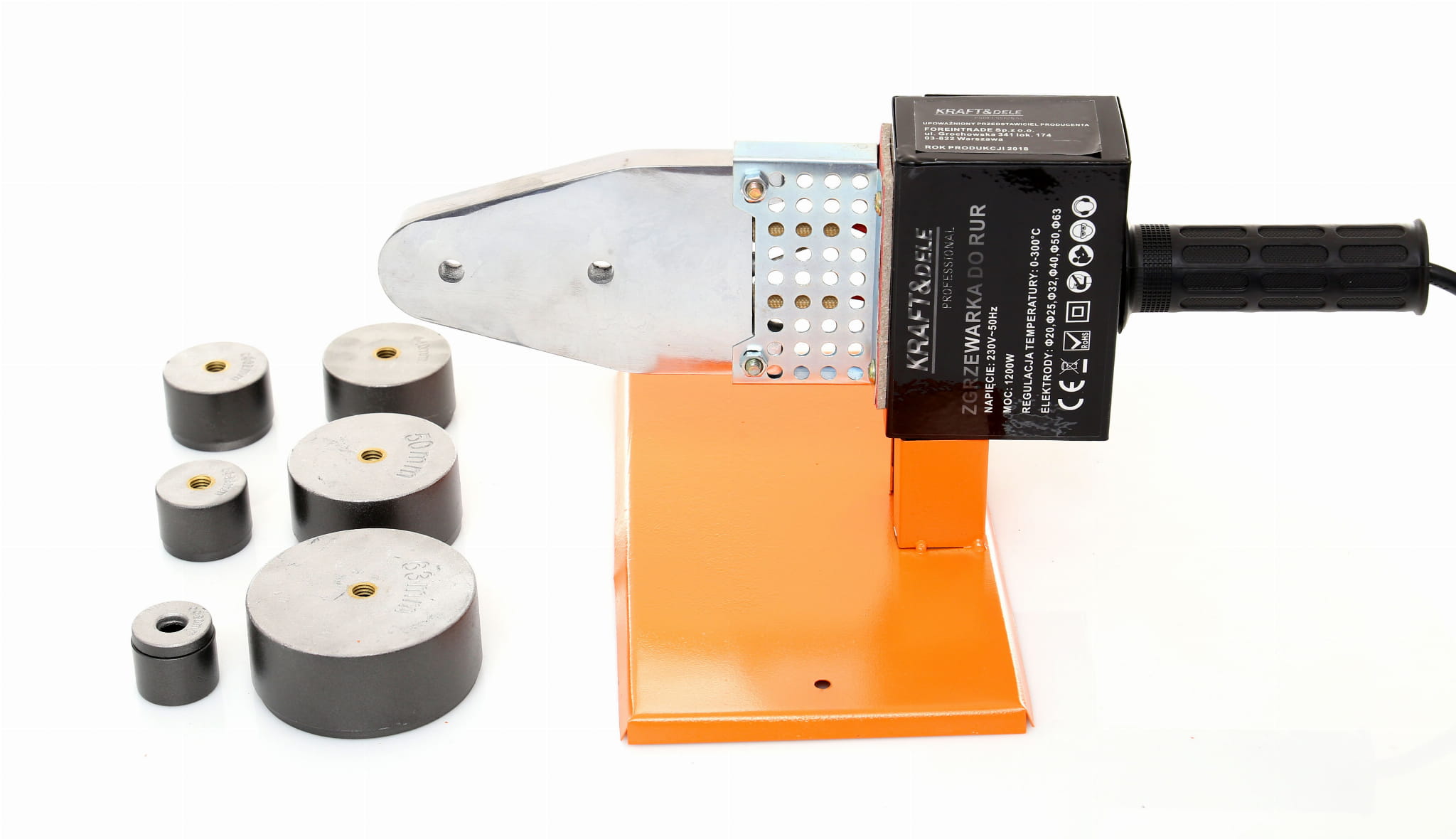 Zgrzewarka elektryczna do łączenia rur z tworzyw termoplastycznych (PP, PE, PVC) metodą zgrzewania polifuzyjnego. Urządzenie z serii Professional marki KRAFT&DELE przeznaczone do instalacji wodnych i grzewczych — zarówno w zastosowaniach zawodowych, jak i remontowych.