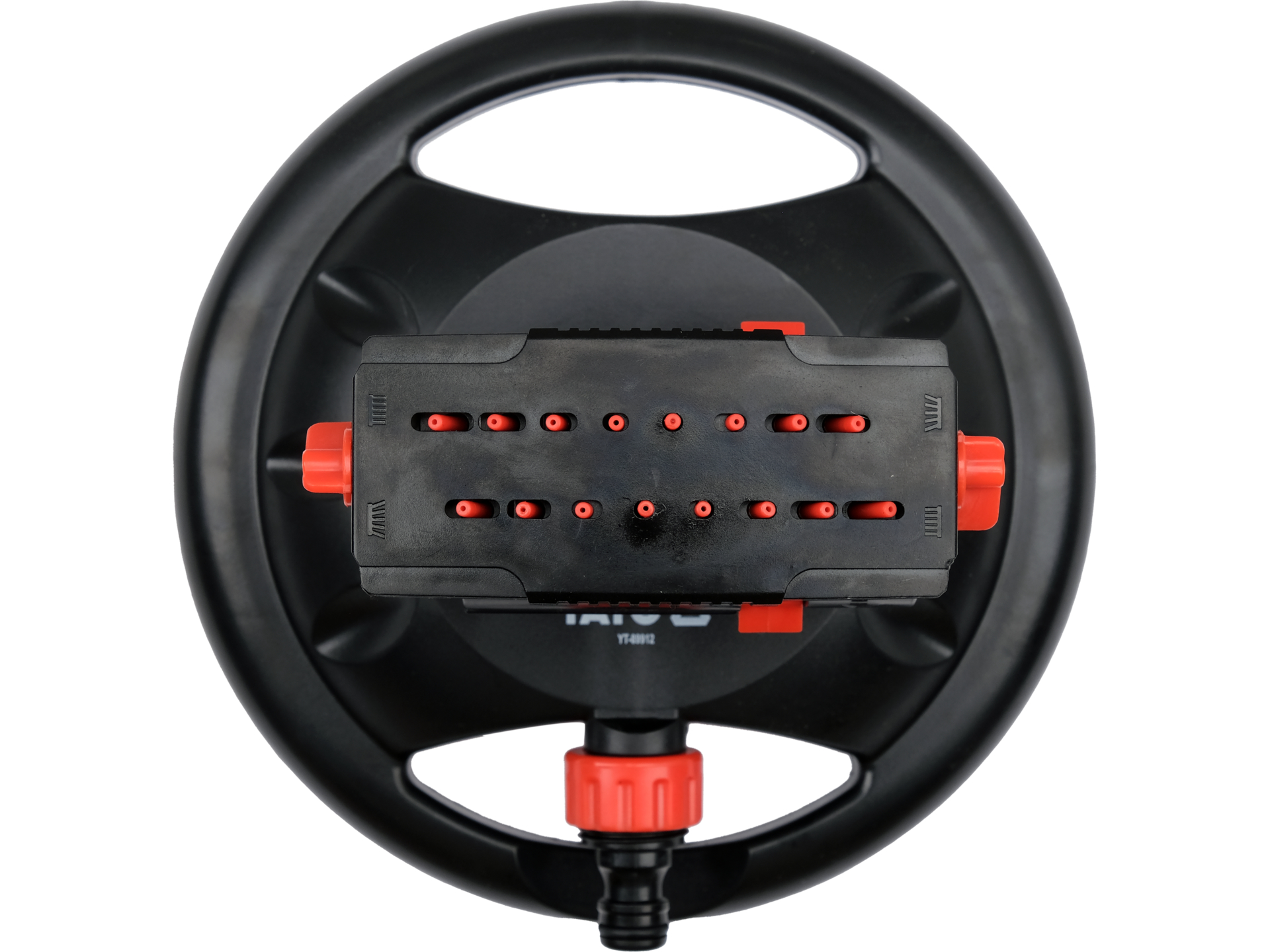 Wbudowany zawór regulacyjny umożliwia zmianę natężenia przepływu bez konieczności regulacji na źródle wody. Funkcja przydatna przy dostosowywaniu intensywności podlewania do aktualnych warunków pogodowych i wilgotności gleby. Zakres zużycia wody wynosi do 18 l/min przy maksymalnym otwarciu.