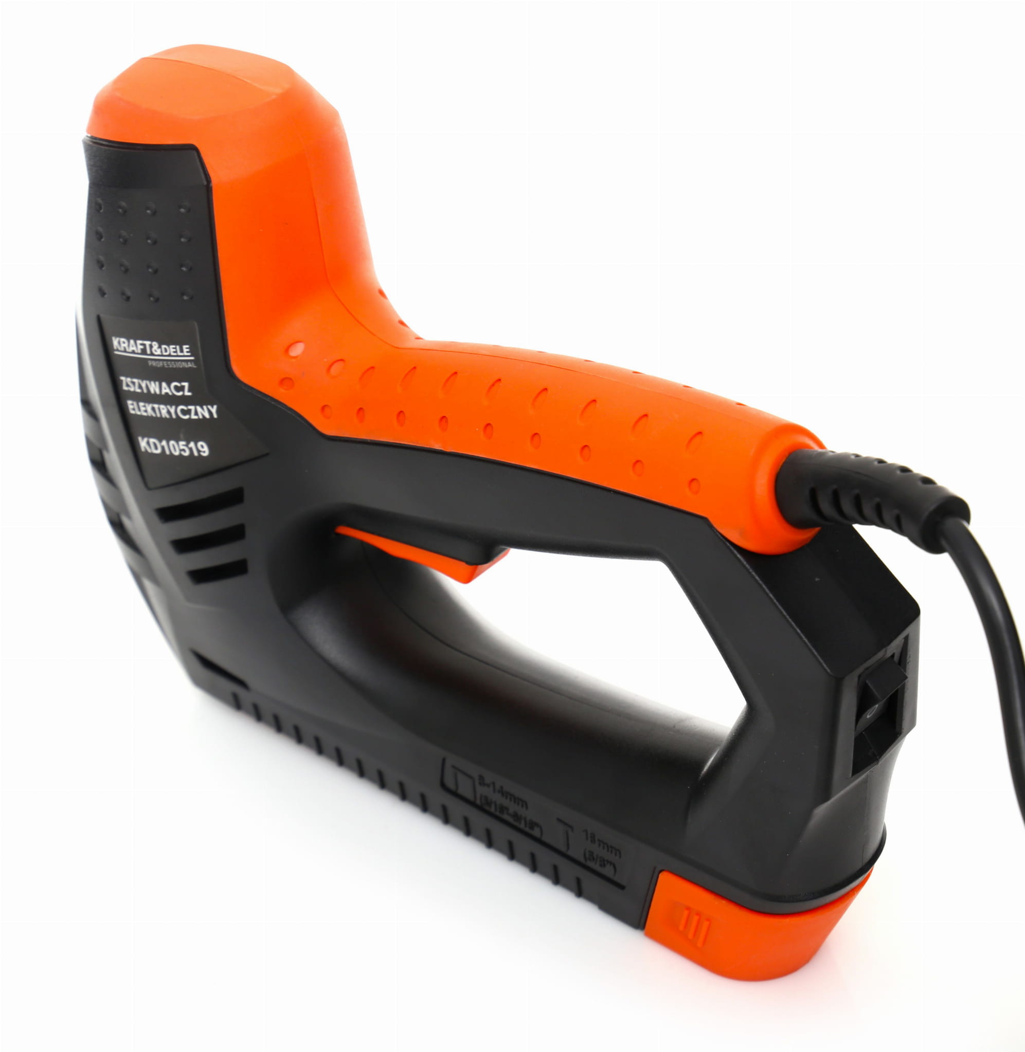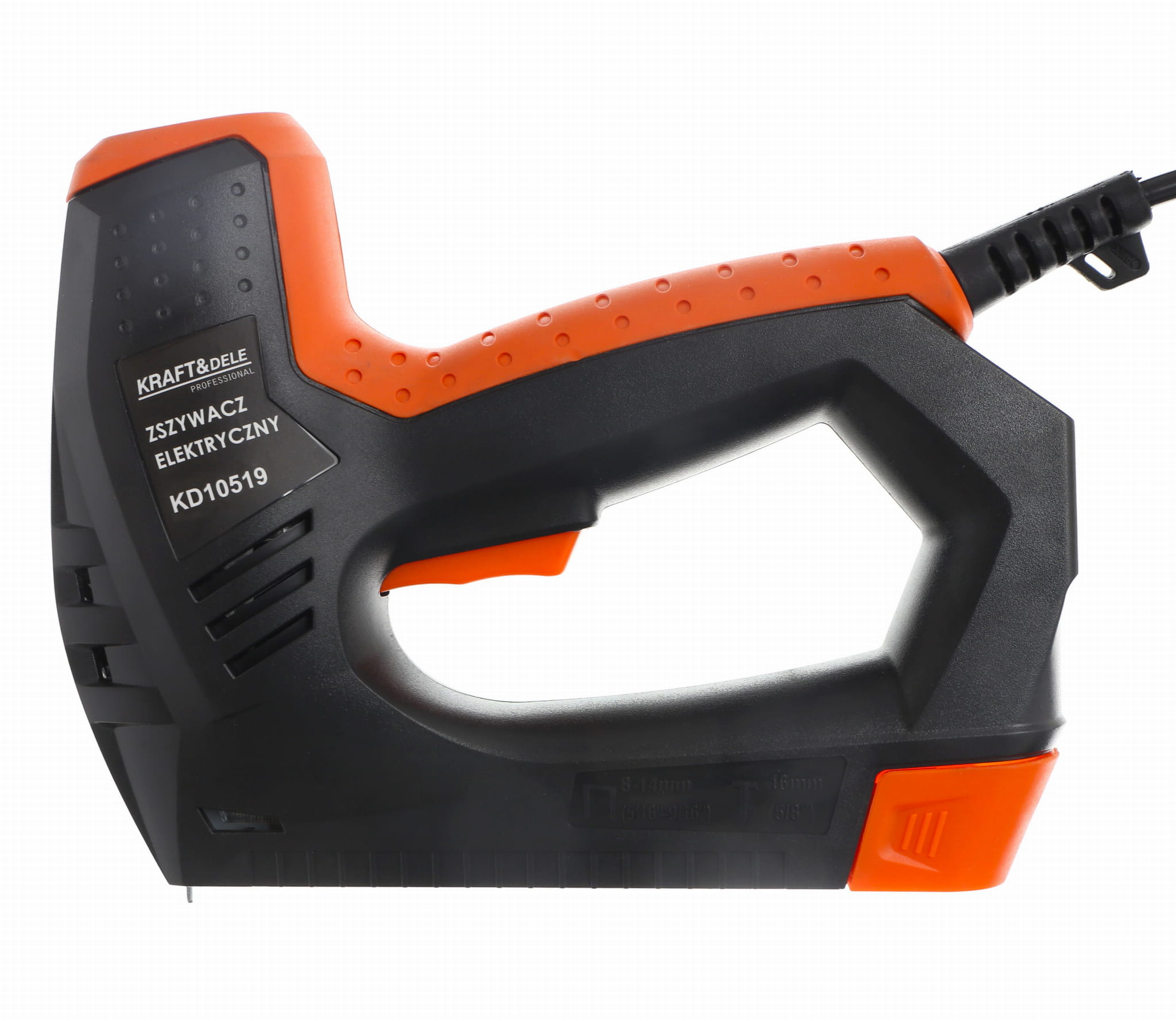 KD10519 to elektryczne urządzenie łączące funkcję zszywacza i gwoździarki, zasilane z sieci 230V. Obsługuje popularne zszywki typu T50 i T53 oraz gwoździe typ T o długości 15 mm, co pozwala na realizację szerokiego zakresu prac wykończeniowych i montażowych bez konieczności posiadania dwóch oddzielnych narzędzi.