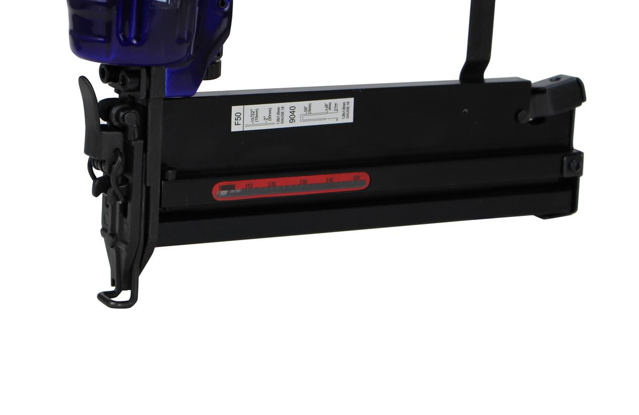 Pneumatyczny zszywacz gwoździowy przeznaczony do prac wykończeniowych — łączenia elementów drewnianych, montażu listew, boazerii oraz innych materiałów z użyciem gwoździ typu T. Narzędzie zasilane sprężonym powietrzem, przystosowane do pracy z kompresorami o ciśnieniu roboczym w zakresie 60–110 psi.