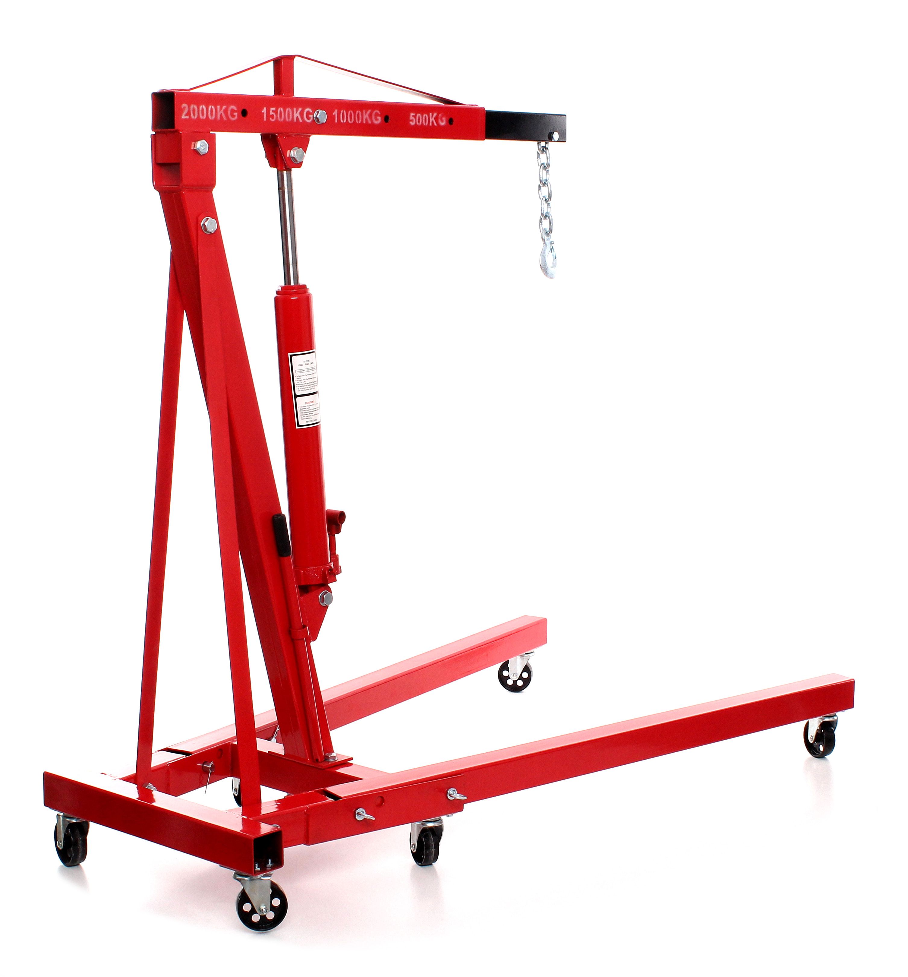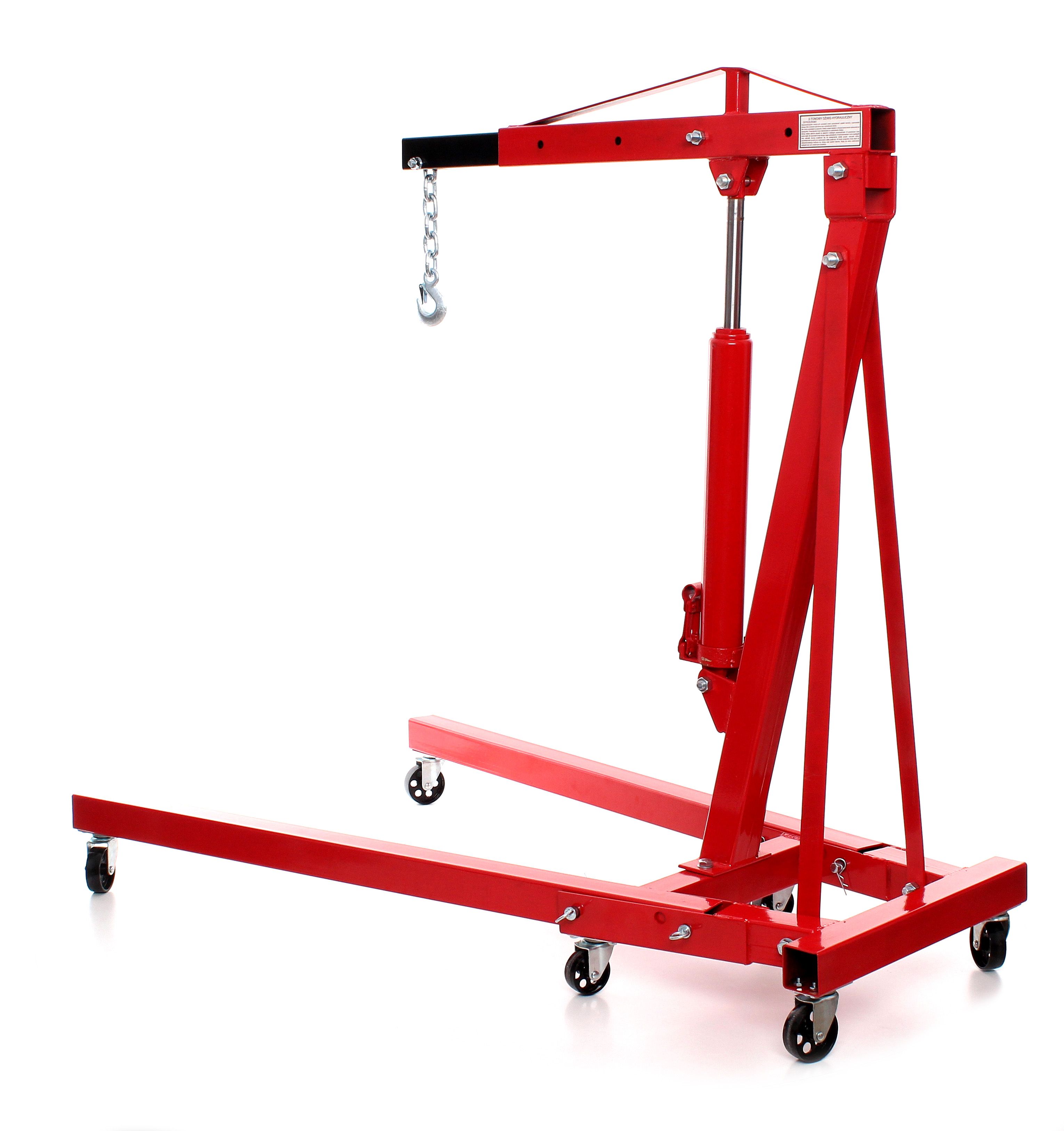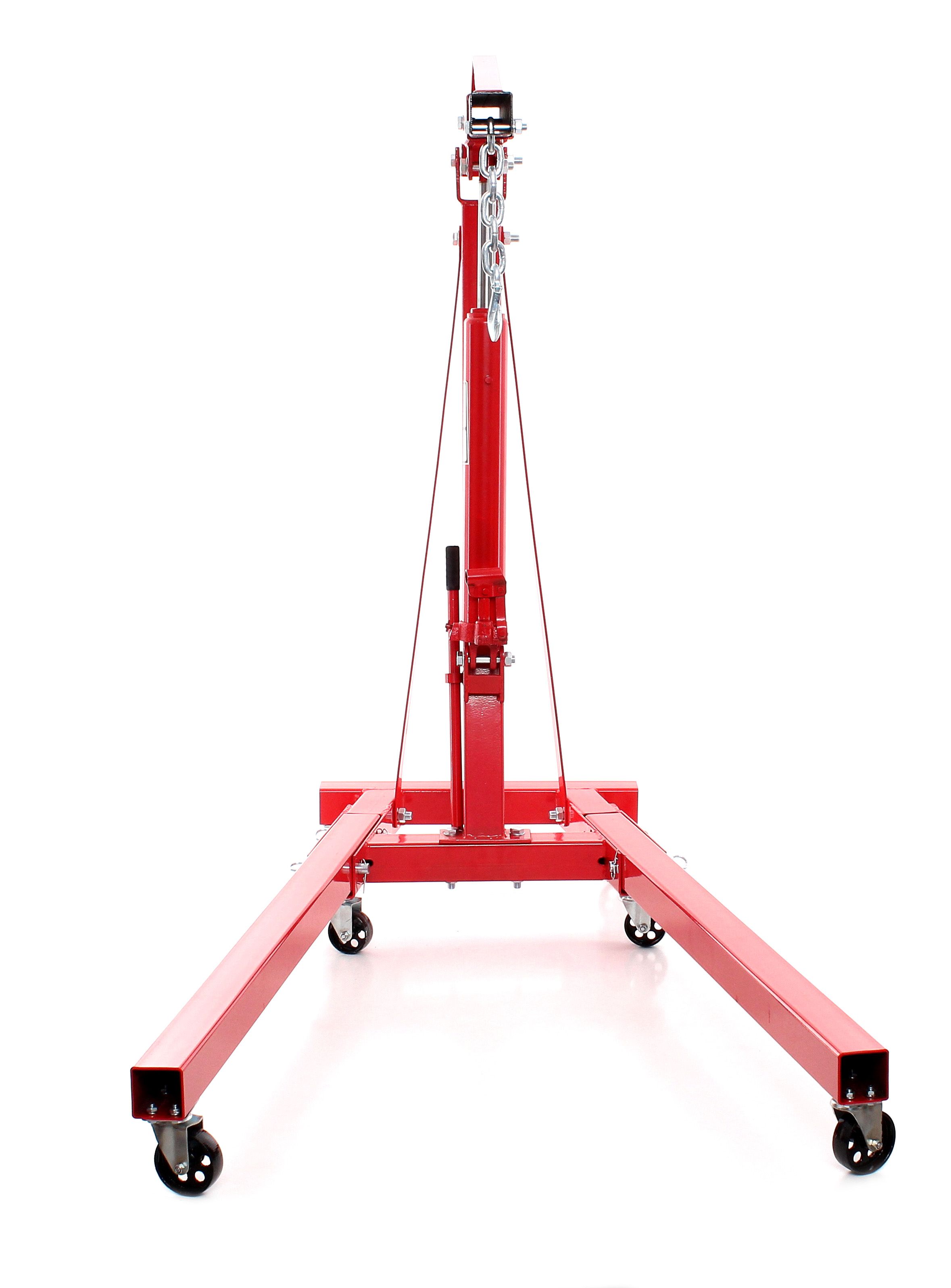 Składany żuraw do silników pozwala utrzymać porządek w warsztacie i schować sprzęt, gdy nie jest potrzebny.