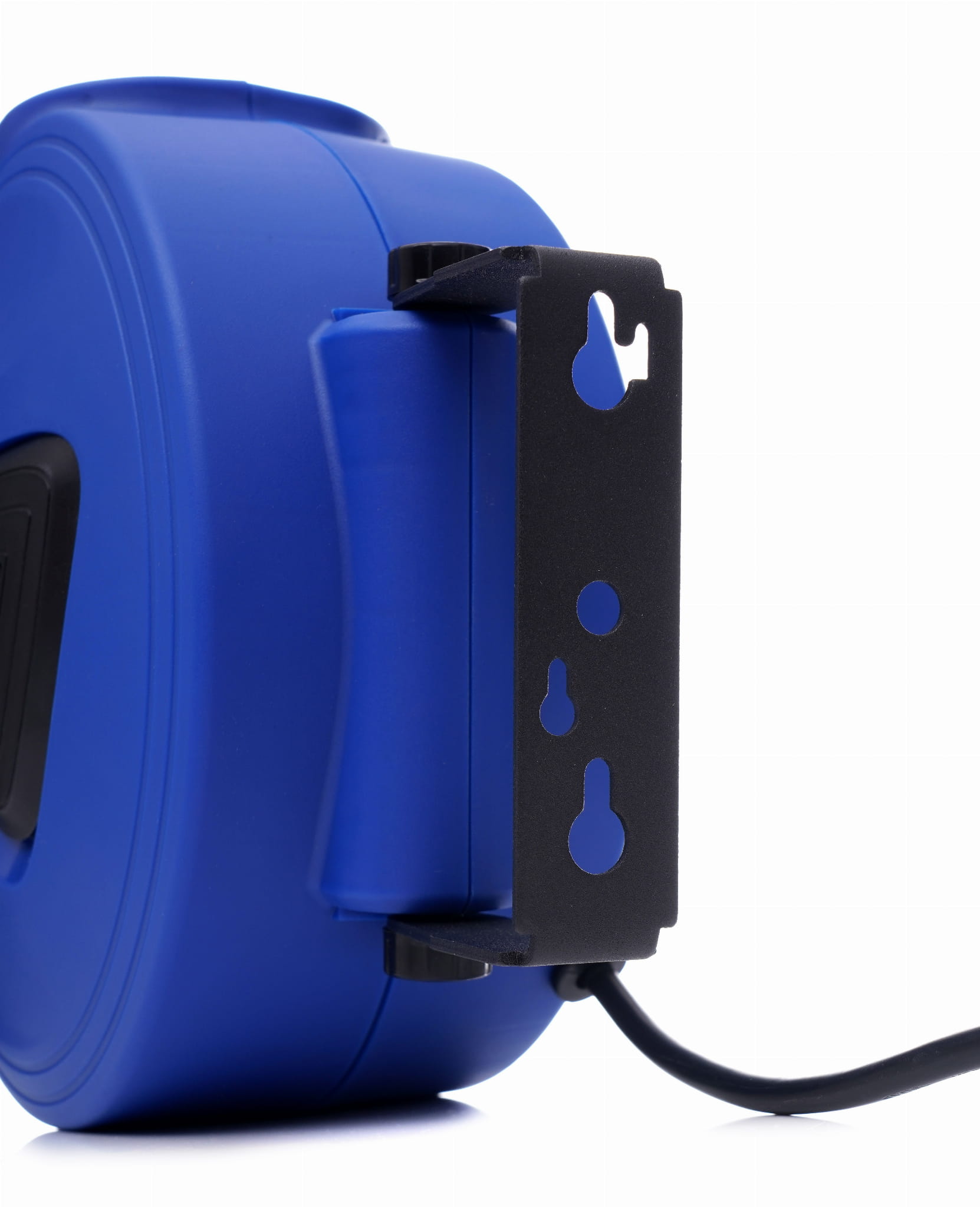 Konstrukcja obudowy umożliwia zamocowanie zwijacza na ścianie, suficie lub słupie. Montaż stały pozwala na stałe poprowadzenie kabla zasilającego i eliminuje konieczność przenoszenia urządzenia — kabel jest zawsze pod ręką w określonym miejscu.