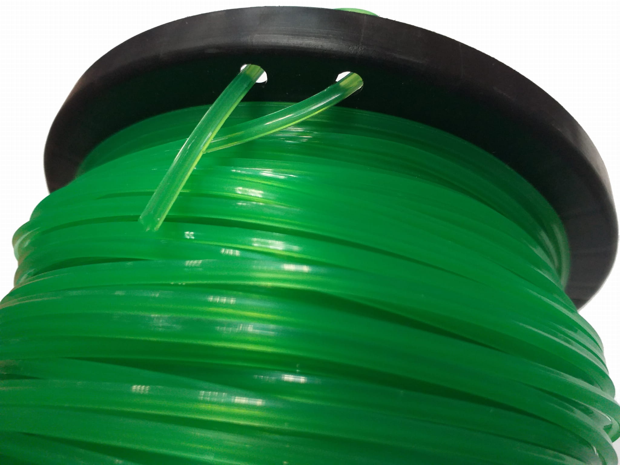 Spiralna struktura przekroju zwiększa sztywność żyłki podczas pracy, co przekłada się na równomierne i czyste cięcie trawy oraz chwastów. Skręt redukuje również wibracje przenoszone na głowicę kosiarki.